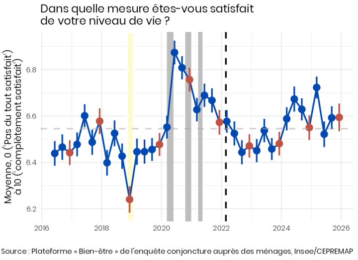 Pour autant, la satisfaction quant à leur niveau de vie reste stable, à un niveau proche de sa moyenne depuis 2016, et supérieur à celui qui prévalait avant 2020 (Figure 4).